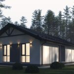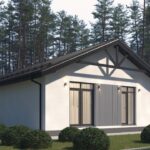 Современный одноэтажный дом, сочетающий в себе функциональность, стиль и комфорт для загородной жизни.
